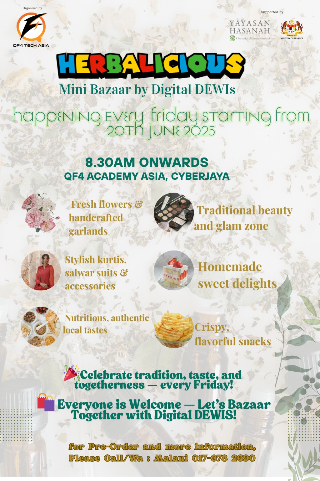 ๐ฉ For more info or collaboration opportunities, please reach out to the Herbalicious Mini Bazaar organizer, Ms. Malani at 017 378 2690
