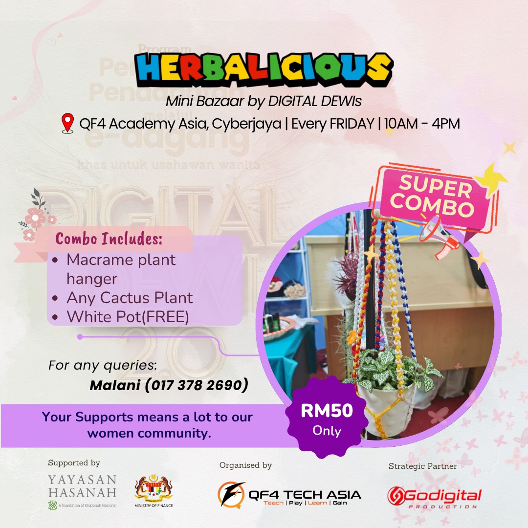 The Digital Dewi 2.0 program is organized by QF4 Tech Asia Sdn. Bhd., with the support of Yayasan Hasanah and the Ministry of Finance Malaysia & Godigital Production as media partner. This initiative empowers women to grow as digital-savvy entrepreneurs and now, they’re putting their skills into action!