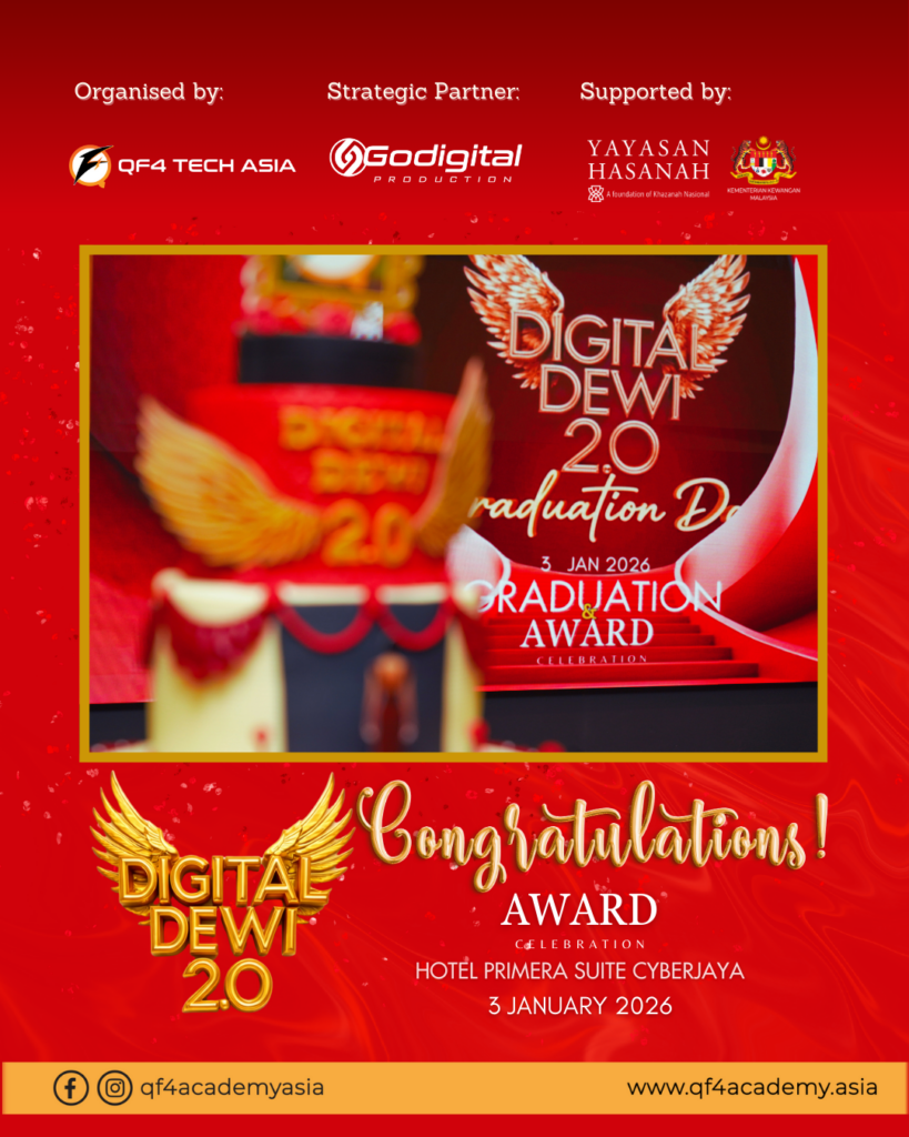 This journey was made possible through the collaboration of our visionary funders and partners. Thank you, Yayasan Hasanah, Ministry of Finance Malaysia and Godigital Production, for their unwavering support and for making the Digital Dewi 2.0 journey possible and to all of our our program supportersπΉ NADI PPR Sri Pantai πΉ Dr. Lavanya Pillai πΉ DIGITGAL Asia Pacific University of Technology and Innovation (APU / APIIT) πΉ KPK Millennium Consultancy Kavitha Letchmana πΉ Selangor Information Technology & Digital Economy Corporation (Sidec) πΉ PLATS (Platform Selangor) πΉ Pepper Labs Social Enterprise πΉ V One Production
